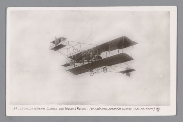 Wayne Davis made this print of a Curtiss Falcon D-12, sometime in the mid-twentieth century, using etching. This process involves drawing into a wax ground on a metal plate, then immersing the plate in acid. The acid bites away the exposed metal, creating incised lines that hold ink. The character of the etching process greatly influences the appearance of the print. The etched lines are delicate, creating a sense of light and airiness around the subject. Note the intricate details of the aircraft: the network of supporting wires, the textural elements, and the subtle tonal variations, achieved through varying the density and depth of the etched lines. Davis's choice of etching links him to a long tradition of printmaking, and the democratized production of images. Yet, it also reflects the social context of aviation's early days. The Curtiss Falcon D-12 evokes a sense of technological advancement and industrial prowess. The artist celebrates the ingenuity of engineering and design, and the skilled labor involved in bringing such machines to life. By focusing on materials, making, and context, we can understand the full meaning of this artwork.