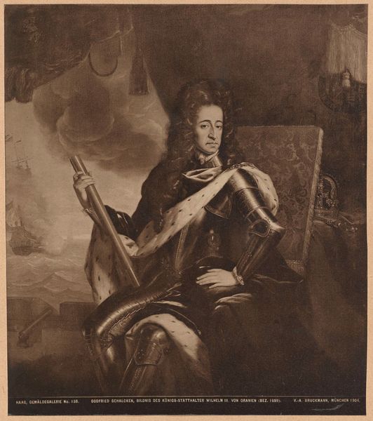 Curator: Here we have William Pether's "Warrior," from the Harvard Art Museums, an image that resonates with familiar archetypes. What feelings arise as you look at it? Editor: Immediately, a strange mix of power and melancholy. He looks every bit the part, but the light catches him in a way that hints at something more internal. Curator: That might stem from the figure's symbolic position. The warrior, across cultures, represents not just brute strength but also responsibility, sacrifice, and often, a tragic fate. Editor: He seems almost burdened by the sword, doesn't he? Like it's less a weapon and more a weight he has to carry. Perhaps it’s the heavy chiaroscuro adding to the gravity. Curator: Precisely. Pether uses light and shadow to amplify this sense of internal conflict, a common theme in depictions of warriors throughout art history. Editor: It's funny how a single image can hold so many layers, so much unspoken narrative. I feel like I could write a whole story just based on his expression. Curator: That is the beauty of art, isn't it? A visual symbol, charged with cultural and emotional resonance, waiting to be interpreted. Editor: Absolutely. Each viewer becomes a storyteller, in a way.