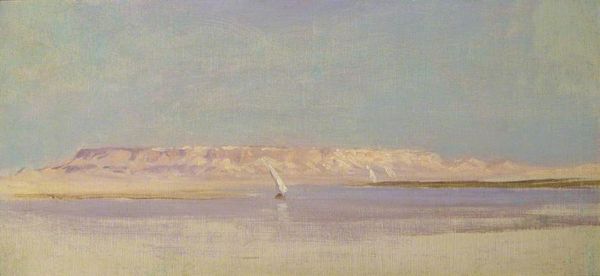 Vasily Polenov's "Sea of Galilee" presents a landscape imbued with tranquility, rendered in soft hues and broad strokes of oil paint. The composition is neatly divided into thirds, each horizontal band layering land, water and sky. This creates a serenely balanced scene. Polenov’s application of Impressionist techniques to a biblical setting introduces an intriguing interplay between the sacred and the secular. The structural simplicity invites a reading of the landscape as a symbolic space, where natural forms evoke deeper spiritual meanings. The way the land meets the water, and the water meets the sky suggests a harmonious, almost utopian vision. Observe how the textured brushwork animates the rocks and meadows in the foreground, drawing the eye across the painting. This tension between surface and depth creates a dynamic visual field. "Sea of Galilee" is a captivating example of how formal elements work in conjunction with cultural and historical contexts to create a work of art that resonates across different levels of interpretation.