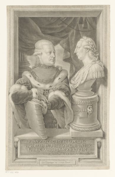 Nicolas de Larmessin’s undated print portrays the joint portrait of Lodewijk III and Karloman II. The composition, confined within an oval frame, offers a study in contrasts through its meticulously engraved lines. The artist uses an economy of detail to convey texture. Notice the dense, cross-hatched lines defining the armour and fabric, juxtaposed with the smoother rendering of the faces. This contrast draws our attention to the status and humanity of the subjects. The use of line here creates not just visual interest but a semiotic code, distinguishing the personal from the symbolic. The formal structure, typical of portraiture, is destabilized by the mirrored symmetry and shared space, challenging the singular importance of the individual ruler. This doubling might invite us to reflect on power and its distribution. The print thus functions as more than a mere likeness; it's a discourse on the very nature of rulership.