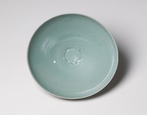 Curator: Looking at this gorgeous, swirling glass plate, I’m instantly transported. Editor: Yes, it has a hypnotic pull. A mesmerizing vortex—it’s deceptively simple, almost austere, yet there's a lot happening. I am getting Venetian vibes. Curator: That's because this "Deep Dish," created around the 17th century in Venice, is a beautiful example of Venetian glasswork. It’s anonymous, sadly, so we can only guess at the artisan who coaxed such delicate patterns from glass and ceramic. It lives here with us at the Minneapolis Institute of Art. Editor: The precision of those spiraling lines is just breathtaking. Each seems to whisper of meticulous labor, like tiny glass snakes charmed into perfect formation. You almost expect it to hum with trapped energy! And the way the light passes through… It feels less like looking at a dish and more like gazing into some primordial soup of creation. Curator: Precisely! This dish seems to echo the Renaissance obsession with mathematical order, those repeating circles reminding us that there's a certain visual harmony at work, it reminds us about the structure and rhythm of life, itself! Think about all the circles we use in symbolic ways - weddings rings, or halos. Editor: Interesting parallel! This makes me wonder what special occasions called for it? The glass is beautiful but it is practical at the same time - meant to be used. Were precious candies nestled within? Oysters shimmering on ice? How were rituals, like births or unions celebrated by eating out of something this beautiful? Curator: I imagine the latter. Venice was a cultural melting pot in the 17th century, full of wealth, artistic energy and intellectual buzz, and these ceremonial moments needed dishes to match the setting. It’s a wonderful dance of function and fancy! Editor: Right! Thanks for drawing my eye back to that incredible geometric motif at play here. The anonymous artist must have poured his soul and the secrets of Venice into this deceptively "simple" plate. It now has echoes in our lives and what we do to eat or to drink to. The continuity with our memory and this object makes you appreciate things. Curator: A beautiful reminder, isn't it, of how human ingenuity, cultural values, memory, and artistry can converge. A humbling and moving consideration of life itself.