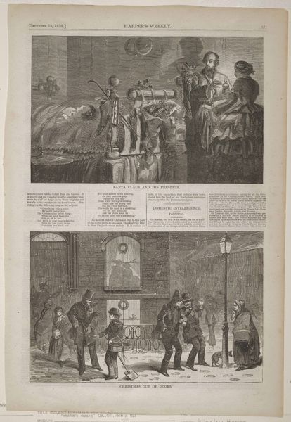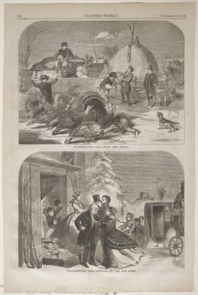 Winslow Homer made this wood engraving, "The Dance After Husking," for *Harper's Weekly*. The illustration depicts rural life, but the ways it presents this is not always straightforward. Made for a widely circulated publication, this print catered to the interests of a broad readership, particularly urban elites who enjoyed sentimentalized views of the countryside. Note the romantic framing of the image. We see, on the upper panel, how farmers lead their harvest home, while the lower panel depicts a lively dance. The contrast suggests a harmonious relationship between labor and leisure, but what does it exclude? What are its politics of imagery? Further research into 19th-century American print culture, agricultural history, and dance traditions can illuminate the complex meanings embedded in Homer's seemingly simple illustration. The meaning of art changes based on where and when it is viewed.