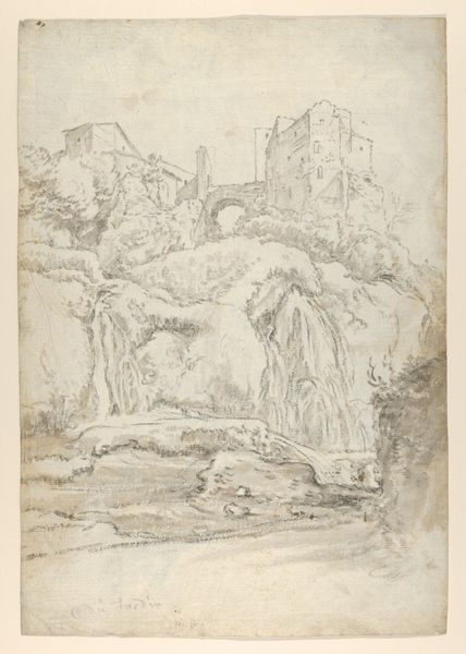 Editor: Here we have Joseph Marie Vien’s "Casino Farnese on the Palatine Hill, Rome," dating from around 1744 to 1750. It’s a pencil and pen sketch. I’m really struck by the rough quality of the line work. What story does the materiality tell us here? Curator: I see the hasty marks less as flaws and more as direct evidence of the artist's labor. Vien, a Neoclassical artist, would have engaged with antique structures not merely as objects of aesthetic admiration but as physical testaments to the vast economic and labor systems required to raise them. The apparent "sketchiness" hints at an emerging aesthetic that privileges the hand and eye of the artist in their lived experience with those classical remains. Editor: So you're saying the drawing itself embodies the artist's engagement with both the physical presence and the social history of the site? How does it differ from, say, a painting of the same scene? Curator: Precisely. While painting might attempt to create an illusion of classical perfection, the medium of drawing and the rawness of this work, specifically, emphasizes the physicality of Vien's interaction. What does the *process* of witnessing, representing, and ultimately *consuming* that architectural labor *look like*? That is a more complicated question than Vien or his patrons might openly ask, but this medium and those sketched, restless lines tell me something profound is rumbling below the surface. Editor: That makes me consider this drawing as more than just a preliminary study. The process and materials are the point. Curator: Exactly! Consider, too, how the “high art” subject matter – Roman architecture – meets the humbler artistic status of a sketch. These apparent class divisions were consistently blurred through increased circulation and consumption of reproducible media from this period forward. Editor: It's amazing to see how examining the material nature of the artwork reveals layers of meaning related to labor, consumption, and the changing status of art itself! Thank you. Curator: It's a constant conversation, looking and thinking!