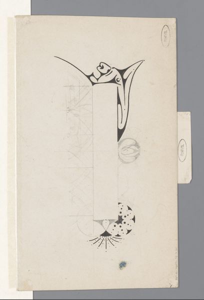 Editor: This is *Vignet met kwasten*, a pen and ink drawing by Carel Adolph Lion Cachet, created around 1899. It's…delicate. Almost fragile, with these very fine lines and the light paper. It feels unfinished, somehow, like a sketch. What do you see in this piece? Curator: I see a carefully constructed emblem, resonating with the visual vocabulary of Art Nouveau, yes, but also something deeper. Observe how the flowing, organic forms – the "kwasten," or tassels, and swirling flourishes – are deliberately contained within a geometric structure. It hints at a tension between the natural world and human control. What symbols might we ascribe to such a construction? Editor: Hmm... control...Maybe the geometric structure represents order, or even societal constraints on artistic expression? And the flowing lines rebel against it? Curator: Precisely. Consider, too, the cultural memory embedded in these forms. Tassels, throughout history, have signified status, adornment, and even power. Are these 'kwasten' suggesting authority, or are they mere decoration, subservient to the larger geometric schema? What emotions do these repeated symbols elicit? Editor: I never considered the tassels as having a cultural meaning like that...I just thought they looked pretty! But seeing the different interpretations gives a whole different feeling to the artwork! Curator: Indeed! Art exists not in isolation but within a network of symbols and collective memory. These symbols invite an opportunity to uncover and explore layers of meaning and artistic choices, and, in a way, the human mind. Editor: It is incredible how the meaning is built, through geometric form, fluid drawing, cultural knowledge, and ultimately by seeing. Thanks for walking me through this drawing.