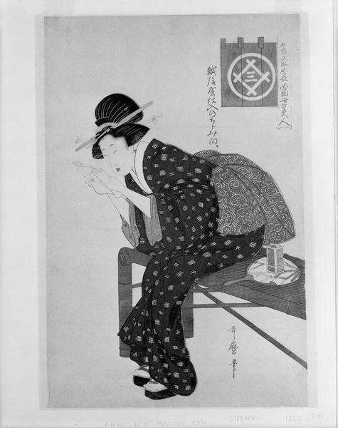 Editor: This is Helen Hyde’s "The Bath," a print showcasing a tender moment between mother and child. It feels very intimate. How do you interpret this work in the context of its time? Curator: Hyde, as a Western woman depicting Japanese subjects, invites a complex discussion about Orientalism and cultural appropriation. What do you notice about the way she portrays the mother and child? Editor: There's a sense of serenity. They seem very connected, peaceful even. Curator: Precisely. Hyde’s work, while aesthetically pleasing, can be seen as perpetuating romanticized views of Japanese culture for a Western audience. Does knowing this shift your understanding of the work? Editor: It does. It makes me question the narrative being presented and the lens through which I am viewing it. Curator: Exactly. By engaging with the socio-political context, we recognize how images can both reflect and shape cultural perceptions. Editor: I hadn't considered the layers of representation before. It’s more complex than I initially thought.