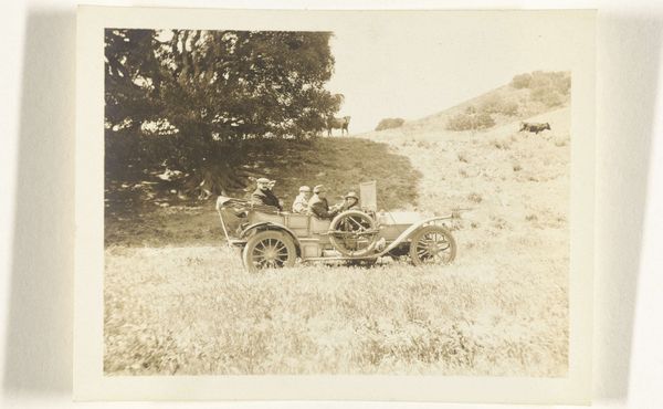 Curator: Jack Gould’s small photograph, just six by six centimeters, captures an exciting moment: drivers drag-racing in tiny cars. Editor: It has a vintage feel; the muted colors evoke a sense of nostalgia and recklessness. Curator: Gould's photograph presents an interesting look at leisure culture. The subject matter--drag-racing--certainly speaks to ideas of speed and spectacle. Editor: I see it as more than just spectacle, though. The small scale is interesting. Is it about the anxieties around masculinity and power? Perhaps reflecting the energy crisis of the time? Curator: That is an interesting point. This invites us to consider the historical context—what's being mirrored or critiqued. Editor: Precisely. It makes you wonder about the aspirations and constraints of the era.