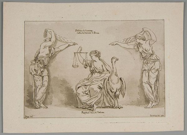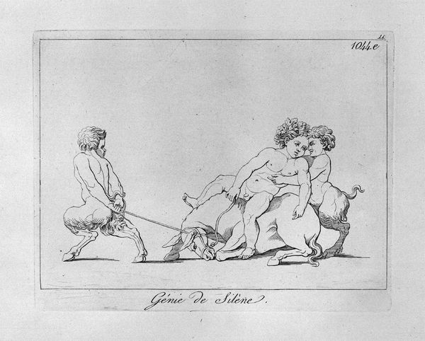 Editor: This engraving, "Genius of Bacchus" by Giovanni Battista Piranesi, shows a cherubic figure riding a cart pulled by two satyr-like creatures. The fine lines give it an almost dreamlike quality. What strikes you most about this piece? Curator: I see a work deeply engaged with power dynamics and the complexities of mythological representation. The “genius” of Bacchus, typically associated with liberation and ecstasy, is here literally carried by figures that blur the lines between human and animal. It asks us to consider the exploitation inherent in these narratives. Editor: Exploitation? That's not immediately apparent to me. Curator: Look closer. The satyrs, figures often associated with unbridled freedom, are here harnessed, their agency suppressed to serve the comfort and display the "genius" of Bacchus. How might we interpret this scene through a postcolonial lens? The “civilized” riding atop the “natural,” so to speak? Editor: That’s a compelling point! I was focused on the historical context of neoclassical art, but now I see how the imagery reinforces social hierarchies. Curator: Piranesi, while working within neoclassical frameworks, was often critical of power structures. Consider the performative aspect of the Bacchus figure holding up that plate, as if offering something when in reality, others are doing the work. How might we read this through the lens of gender and the historically patriarchal structures of artistic patronage? Editor: This completely changes my perspective! I now see a much more subversive and challenging reading of a seemingly lighthearted mythological scene. Curator: Precisely. Art is never neutral; it's a reflection of and a participant in ongoing dialogues about power, identity, and representation. Hopefully you are taking with you an ability to situate art in this cultural context. Editor: Absolutely. Thank you; I definitely will.