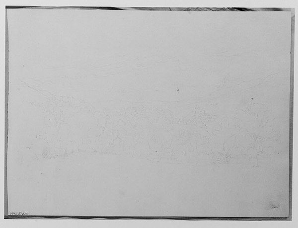 Editor: We are looking at Albert Bierstadt's "Study for Seascape (from Sketchbook)," created around 1891 using pencil. There is something peaceful about it despite its simplicity and unfinished character; I find myself drawn to the implied vastness of the scene. How do you interpret this work? Curator: Bierstadt's seascape studies are fascinating when considered against the backdrop of the late 19th century American art scene. He was, of course, celebrated for his large-scale landscapes depicting the American West. These works were very popular. What is striking is the turn to what seems more "intimate," and preparatory. Do you see it as unfinished? Editor: Perhaps "unfinished" is too strong a word, more like... fleeting. I guess that leads me to think, was there a market or institutional interest in sketches like these, given his reputation rested on his grandiose paintings? Curator: That’s a key question! This reflects the shift toward impressionism's emphasis on capturing immediate sensations and the individual artist's perspective. Consider how collectors and institutions began valuing these more intimate, seemingly unmediated glimpses into the artist's process, and, to the way artists worked. This reflects a changing understanding of what constitutes 'art' in the public eye. Does it alter your initial read? Editor: It definitely makes me think differently about it. The sketch now reads to me as Bierstadt participating and maybe experimenting with a new cultural understanding of art. Thanks! Curator: Exactly! And by examining the historical reception, we gain deeper insights into how this work negotiates the changing artistic landscape. It has been a pleasure.
