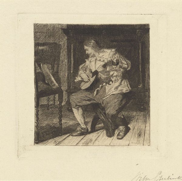 Curator: This poignant drawing, dating from between 1829 and 1849, is by Petrus Marius Molijn. It’s titled "Zieke man krijgt te drinken," which translates to "Sick man getting a drink." It seems to be executed in pencil and ink, featuring delicate lines and shading. Editor: My immediate reaction is quiet sympathy. The lines are so fragile, the scene so intimate. There's something heartbreakingly tender about it, almost as if we're intruding on a private moment. It reminds me of trying to care for someone who is really unwell and the exhaustion of both parties. Curator: Yes, intruding feels apt. Consider the context of the 19th century. The work reflects a growing social consciousness and a focus on everyday life and ordinary people. These intimate, vulnerable portrayals offered an implicit critique of societal inequalities and lack of access to proper medical care. The composition, with its emphasis on light and shadow, also pulls us into a shared feeling of concern. Editor: Absolutely. The sketchy nature somehow enhances that immediacy. It doesn't feel staged or posed, but captured on the fly as a glimpse into lived reality. It makes me think about the invisible labor of care and how it disproportionately falls onto women and other marginalized groups. Curator: Precisely. The illness becomes a kind of mirror, reflecting broader societal ills and the burden placed on certain individuals within a social system marked by profound disparities. The drawing speaks volumes about gender roles and expectations. This could very well be read as a snapshot into their relationship where care falls on certain individuals rather than being distributed as a form of common care. Editor: Thinking about it now I realize I had jumped to assumptions that it was a family relationship! In the intimate reality, we have to ask if this reflects a care relationship for which some were and are paid for rather inadequately? Curator: That is a powerful shift in perspective and definitely challenges what might appear as only one, more benign way of reading the artwork. It underlines its strength as a document reflecting on human connection and obligation. It also suggests lines of intersectional analysis. The image seems almost humble, but prompts some very current concerns. Editor: And it does all this without grandstanding, without being didactic, it asks us simply to witness. Its simplicity gives it a resonance that lingers.