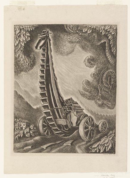 Wanda Gág created this lithograph entitled ‘Steep Road’, and here we see a path, almost a stream, cutting through a landscape with what looks like a road. Roads and pathways are ancient symbols, appearing in mythologies and art across cultures. They symbolize journeys, both literal and metaphorical. In ancient Greece, Hermes, the messenger god, was often depicted with winged sandals, traversing pathways between the divine and mortal realms. This idea of transit is also present in Egyptian mythology with the weighing of the heart ceremony, which dictates passage into the afterlife. But, in this print, the steepness may suggest something more psychological. Think of it as a metaphor for life’s journey, with all of its struggles and difficult paths we must embark on, which are often uphill battles. Just as pathways in art continue to evolve, so too does our own interpretation of life. These themes cycle through our collective consciousness, reappearing in art and life.