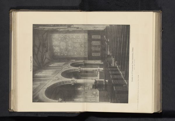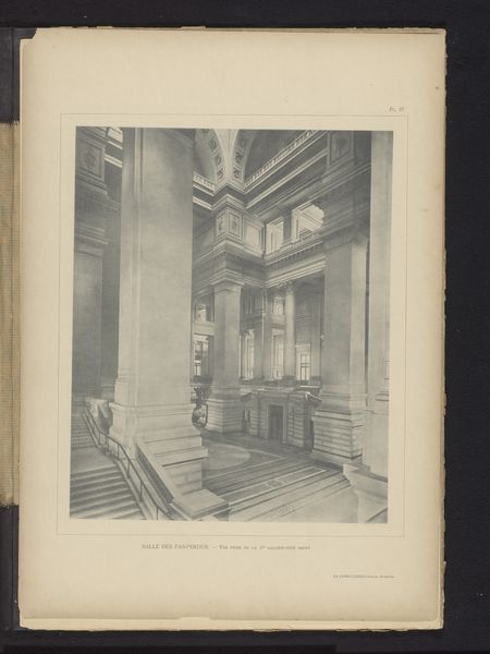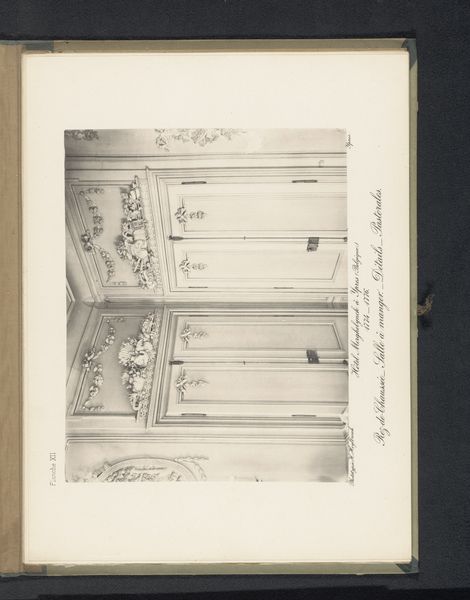 Curator: Hector Heylbroeck gifts us with this view, dating from before 1894. It's titled "Grote slaapkamer op de eerste verdieping van Hotel Merghelynck in Ieper, België" – "Large bedroom on the first floor of Hotel Merghelynck in Ypres, Belgium" for those of us without Dutch. This photogravure captures a world suspended, like a stage set before the play begins. Editor: Ghostly, isn't it? It's all right angles and ornate trimming. The room looks like it’s holding its breath. A grand stage, but utterly empty. Like an invitation and a warning all at once. Curator: Indeed. The photograph itself takes on the aspect of an almost spectral preservation of the Belle Époque. Notice how the lines of the paneling pull your eye towards an unseen space just beyond the frame. It teases with notions of hidden passages or perhaps untold stories echoing within those walls. Editor: Oh, definitely feels haunted, but beautifully so. I'm struck by the almost aggressive lack of color. Every shadow, every nuance in the plasterwork is a deliberate choice, forcing you to confront the composition directly, like a stern mother. It makes me think about purity and restraint. Is the all-white room designed for quiet reflection or sterile surveillance? Curator: Maybe a little of both. Purity in design mirroring purity of intent – though in reality those concepts rarely align, do they? White signifies new beginnings, erasing the old and hinting at what the future might contain. Also consider how the eye craves focal points, meaning becomes even more precious, everything present takes on additional gravity. Editor: So true! The absence almost becomes the symbol. In that way this pre-1894 space is strangely present for the future—now for us—an echo of lost meanings looking to be reborn. And as time passes, these questions transform as much as the photo is fixed, revealing a story larger than the room itself. Curator: I hadn't considered it like that, but you're quite right. What seemed frozen suddenly flows into ever changing interpretive forms. Editor: It’s wonderful, isn't it?
