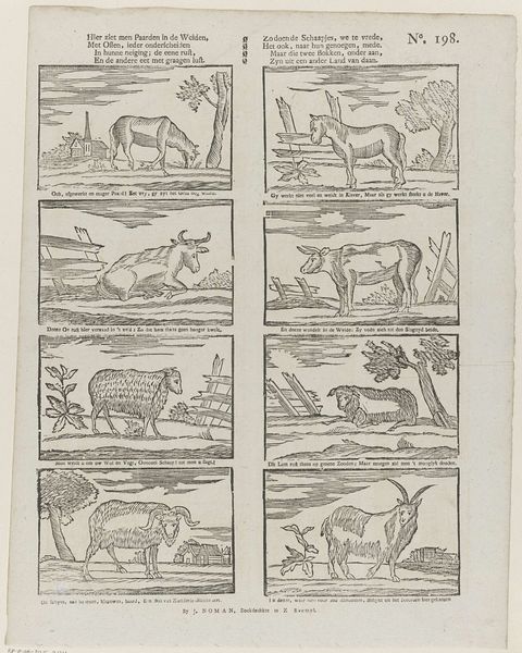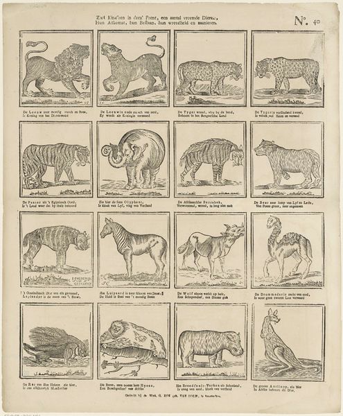 Editor: Here we have *Albumblad met diverse voorstellingen*, a collection of drawings in ink and watercolor on paper, made sometime between 1814 and 1869 by Alexander Cranendoncq. The sketchbook page teems with various animals, each meticulously rendered. What strikes me is how each animal seems isolated, almost like specimens. How do you interpret this menagerie? Curator: That sense of isolation is key, isn't it? While seemingly a collection of animals, it invites a deeper probe into 19th-century European society's relationship with the natural world. Consider the era, marked by colonial expansion and scientific classification. Could this be a reflection of how people were categorizing and, in essence, controlling nature? Editor: So, instead of a simple collection, it's more like a visual inventory tied to colonial attitudes? Curator: Precisely. Look at the style. The drawings feel academic, almost clinical. The animals are devoid of much interaction, presented as objects of study. How does that influence our reading of this artwork, knowing the historical backdrop? Editor: It definitely shifts the meaning. The drawings become less about nature's beauty and more about its exploitation for knowledge and resources. Is it fair to see these animals as symbols of the colonized world, then? Curator: It’s a very relevant connection to make, given what was happening during the artist's time. And this brings forth the urgent dialogue we need to keep alive around how we situate living beings, and the responsibilities we need to have. Editor: This was very helpful. It's incredible how a simple-seeming sketchbook page can open up a whole discussion on colonialism and control. Curator: Indeed. Art often holds up a mirror to society, reflecting its values and power structures, inviting us to question the status quo.