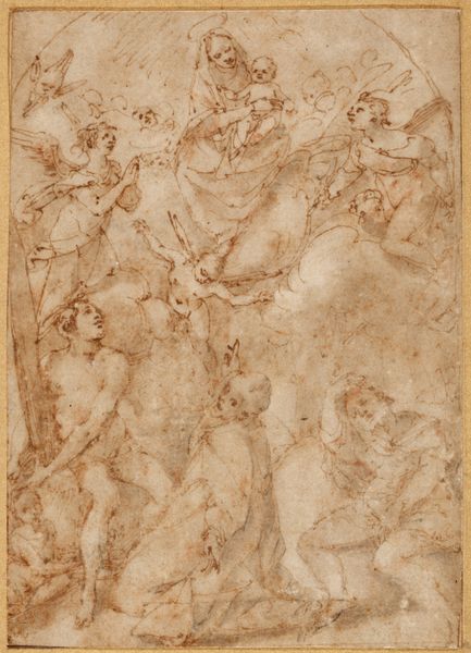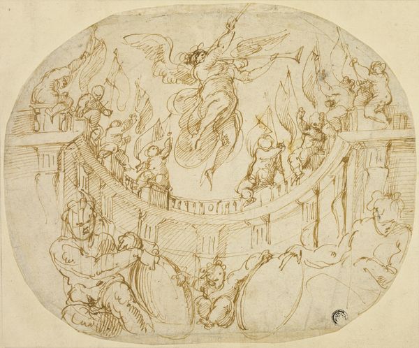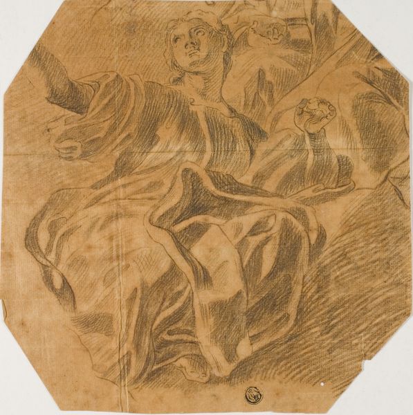 Ciro Ferri created this pen and brown wash drawing on cream laid paper depicting the Rape of Orytheia flanked by Hercules and Omphale. Made in Italy, this artwork, with its mythological subject matter, reflects the cultural values and artistic conventions prevalent during its time. Ferri’s choice of classical themes speaks to the enduring influence of ancient Greek and Roman culture on European art and intellectual life. The depiction of mythological narratives served not only as a form of entertainment but also as a means of conveying moral lessons and exploring universal themes. Examining this artwork requires an understanding of the social and cultural dynamics of 17th-century Italy, particularly the role of patronage in shaping artistic production. Figures like Ferri relied on the support of wealthy patrons, such as members of the aristocracy or the Church, who commissioned artworks to enhance their status and prestige. By researching the historical context, one gains insight into the complex interplay between art, power, and society during the Baroque era.