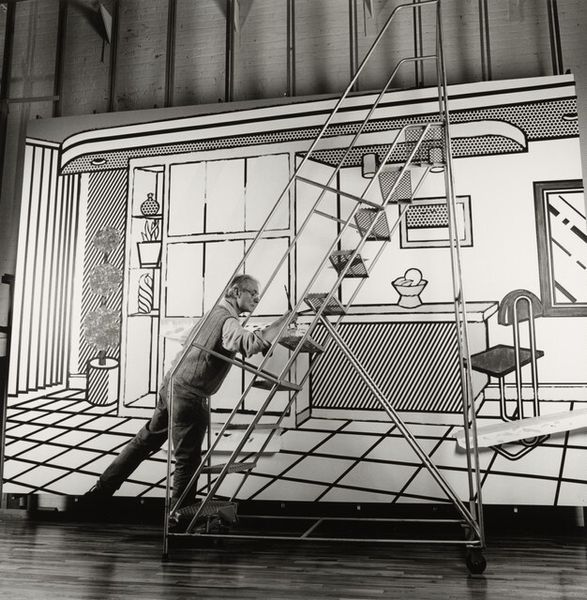 Curator: This fascinating photograph by Waldemar Titzenthaler, simply titled "War: Germany. Berlin. Prussian Guard Regiment: Life in a Regiment of the Prussian Guard: The regimental artist," captures a moment within the Prussian Guard. Editor: It feels very staged, almost performative. The artist, perched precariously, becomes part of a tableau of military might. Curator: Indeed. Titzenthaler, active in Berlin, often depicted scenes reflecting German society and military life. Note the stark contrast between the elaborate mural and the artist's rather humble position and garb. Editor: It raises questions about labor, doesn't it? Who is truly benefiting from this glorification of military power, and at what cost? The eagle and shield feel deliberately propagandistic. Curator: Precisely. The image can be read as a comment on the relationship between art, the military, and the construction of national identity in Imperial Germany. The artist is creating the very symbols that reinforce this power. Editor: It's a powerful, if somewhat unsettling, reminder of the complex role art plays in shaping our perceptions of war and nationalism. Curator: It’s a moment frozen in time, revealing the artist's contribution to Germany's martial image.