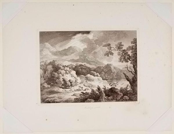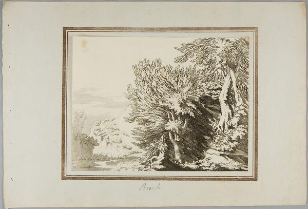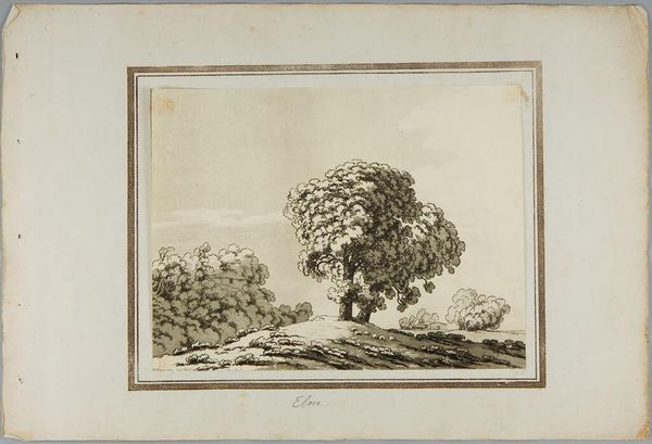 Editor: This is John Robert Cozens' "Oak," the date is unknown and it's held at the Harvard Art Museums. It's got a rather somber mood, almost like a memory fading. What do you see in it? Curator: For me, it whispers of the sublime, that overwhelming feeling nature inspires. Look how the oak and the sky almost wrestle for dominance. It’s a dance between grounded strength and ethereal freedom, wouldn't you agree? Editor: I hadn't thought of it that way, but I see the tension now. So, Cozens is capturing this sense of awe? Curator: Precisely! It's as if he's inviting us to lose ourselves in the face of nature's grandeur, a tiny sketch with endless horizons. Editor: Thanks! That perspective makes this piece so much more captivating. Curator: My pleasure! Art's a conversation, isn't it? A shared journey of seeing and feeling.