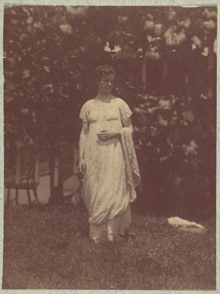 Hendrik Doijer captured this image, "Afro-Surinaams meisje bij stuiverskerkhof," with a camera, rendering the scene in tones of grey. The photograph presents an Afro-Surinamese girl positioned in what appears to be a garden near Stuiverskerkhof. Her figure, a central vertical element, is framed by the textured garden foliage and the geometric grid of a fence behind her. Notice how Doijer uses the contrast between the girl's light-colored dress and the darker surroundings. This formal technique draws our eye to her, inviting us to consider her presence in this space. The backdrop of the cemetery, suggested by the fence, introduces a play of boundaries, both physical and symbolic. What does it mean to frame a young life against a space traditionally associated with death? Through the composition and tonal contrasts, Doijer sets up a dialogue between vitality and mortality, challenging us to unpack the layered cultural and social meanings inherent in this encounter. This image is not merely a record but a complex visual statement.