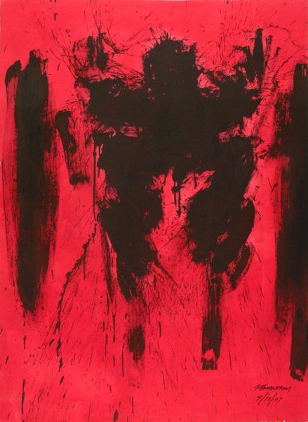 Editor: This is Colin Self’s, *Power and Beauty No. 4*. It’s quite striking, mostly red and black. The subject matter is… well, it looks like the head of a turkey, filling the entire frame. What do you make of it? Curator: The magnified, almost grotesque, image of the turkey’s head certainly challenges conventional notions of beauty. Given Self's history of critiquing power structures, could this image be a commentary on the grotesque nature of power itself? How does the animal, often associated with the banality of the everyday, become a symbol in this context? Editor: That’s fascinating. I hadn't thought about the turkey itself having a symbolic meaning. Curator: Consider also the tension between the title and the image. Is it ironic? Is Self suggesting beauty can be found even in the seemingly repulsive, forcing us to confront uncomfortable truths about the world around us? Editor: I see what you mean. It definitely makes you question your initial reaction. Thanks for the new perspective! Curator: Of course. It's in those tensions that art often speaks loudest.