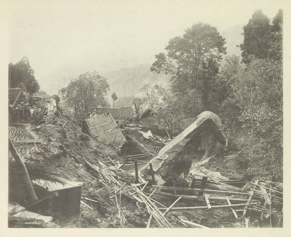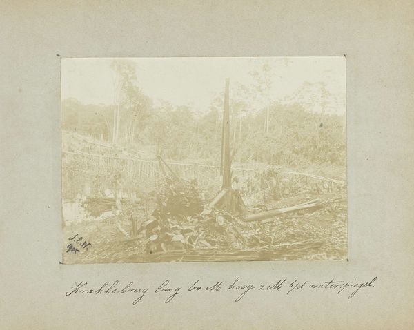 Curator: This powerful image, taken sometime between 1900 and 1920, is titled "Felling Primeval Forest for the Establishment of a Rubber Plantation of the Deli Company near Soengei Tassik on Sumatra." Editor: It's brutal. Even in monochrome, the devastation is palpable. The skeletal remains of the trees—like tombstones—speak of irreversible loss. I find the lack of color actually amplifies the somber mood. Curator: As a work of photojournalism, it certainly presents a stark depiction of landscape transformation. One can read this image as both a literal clearing of the forest, and a symbolic erasure. The "primeval" nature carries connotations of paradise and untouched origins now made vacant. Editor: Absolutely. There is an uncomfortable, violent relationship to this imagery of colonization. This land wasn't empty; lives and entire ecologies were forcibly displaced and exploited for profit. That phrase, "establishment of a rubber plantation," carries so much insidious weight. Curator: The photograph offers a limited view in several senses. On one hand, the limited visual information directs us to certain aspects: The felled trees form diagonal lines that dissect the composition, drawing the eye, and these fallen giants still appear magnificent even in destruction. The composition subtly hints at life beyond—and before. The remaining line of trees across the horizon could perhaps be read as resilient despite the invasion. Editor: It makes me consider ideas around "development" and "progress," concepts often presented uncritically. But here, progress is twinned with destruction. You know, photography can easily be complicit. Think of how colonial photography often erased indigenous presence to reinforce imperial narratives, a practice actively resisted in recent years. Who took this picture and what were their motivations? Curator: Without a known photographer, the symbolic intent becomes amplified, almost mythic. It captures a transitional moment, the tragic tipping point where one reality fades into another. The clearing has become a threshold, in essence. Editor: Threshold to environmental destruction and economic injustice. But the power of images like this lies in their capacity to generate reflection on our continued involvement in such exploitative relationships. Curator: The visual weight of historical narratives remains relevant today, forcing new understandings. Thanks for offering that contemporary framing. Editor: It makes you realize there’s nothing that remains neutral—so important to be thoughtful about what narratives we are amplifying in art and history.
