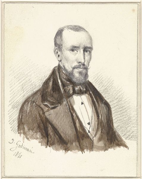 Curator: We're looking at Thérèse Schwartze's portrait of Paul Joseph Constantin Gabriël from 1899, currently housed in the Rijksmuseum. It is a striking piece. Editor: It has a really wonderful melancholic quality, almost mournful in its subdued tones, wouldn't you say? The impasto is handled rather deftly too, there is an unusual lightness in the brushwork. Curator: Absolutely, the mood is captivating. What I find particularly compelling is how the piece operates within the social framework of its time. Schwartze, as a prominent woman artist, painted Gabriël, who himself championed the Hague School, a movement rooted in portraying the everyday lives of ordinary people. The materiality also speaks to the artist's socio economic stance, allowing her to experiment with innovative materials, as the surface and its texture take a leading role in the construction of this person's portrayal. Editor: Precisely! This interplay suggests an intriguing dialogue about class, labour, and the representation of artists themselves. How did their individual roles in the art world influence the production and reception of this specific portrait? We are presented with an affluent portrayal but is the means of production visible? I note a level of artistic control and that intrigues me further. The materiality hints at the accessibility of resources during that period, and how artists negotiated their craft in response to such privilege. Curator: That's an insightful perspective. Consider also how this portrait, made by a woman artist during a period of growing feminist consciousness, reclaims agency in representing a male figure. Schwartze, breaking away from the patriarchal structure within the traditional art historical canon, shapes Gabriel in a way that potentially reflects on or critiques societal norms regarding artistic expression, labour, and the roles allowed within the arts, more generally. It opens up space for dialogue regarding power structures. Editor: A wonderful point! Seeing it as a form of quiet subversion transforms my understanding of its creation and context completely. It certainly invites us to delve deeper into the social dynamics behind its production, encouraging dialogue regarding labour and societal critique during this moment. Curator: Ultimately, examining it as more than just a mere portrait gives us invaluable perspectives into not only the relationship between Schwartze and Gabriel but regarding the societal structures regarding power dynamics and expression. Editor: Indeed, thinking about its materiality as a deliberate artistic choice certainly opens doors to deeper sociohistorical investigations of production and artistry in its own time.