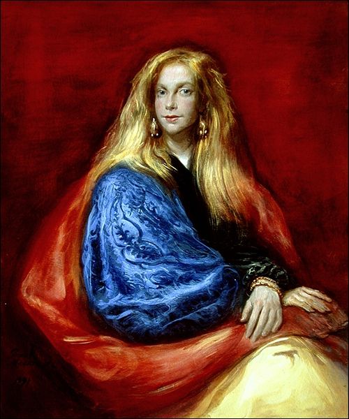 Frank Mason made this painting, "Pauline with Lute," with oil on canvas. I see how the light catches on her cascade of red hair like flames. The brushstrokes are wispy and free. There's a directness and honesty in the way Mason handles the paint; it feels like you can see him figuring out the forms as he goes along. The colour palette is warm, with deep reds and browns. The surface has a velvet-like texture, especially in her ornate dress. I keep coming back to the lute in her hands. The way Mason renders the light on the polished wood makes it seem almost touchable. Those delicate lines give the instrument a life of its own. The Pre-Raphaelites, with their romantic, detailed portraits of women, come to mind. But there’s a rawness in Mason’s approach, a willingness to let the process show, which is so great to see. It's a reminder that painting is always a conversation, an exploration, rather than a fixed statement.