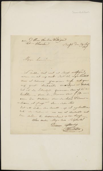 This letter was written in Rotterdam in April 1855 by Jan Hendrik van de Laar. It’s comprised of ink on paper – everyday materials for its time, but hardly neutral. The handwriting, the careful formulation of phrases: all this reveals the amount of time and effort van de Laar put into this missive. But more than that, it speaks to the social context of the art world, of the artist’s dependence on the good opinion of the “Commissie van de Tentoonstelling van Levende Meesters in Den Haag.” He is writing to persuade the committee to exhibit his painting. The letter itself is a carefully crafted artifact. The artist is keenly aware of his position in the social hierarchy, and although he presents himself as a humble servant, he is also canny, knowing exactly who he needs to impress. It’s a performance, which reminds us that “art” is just one part of the larger picture of creative production.
