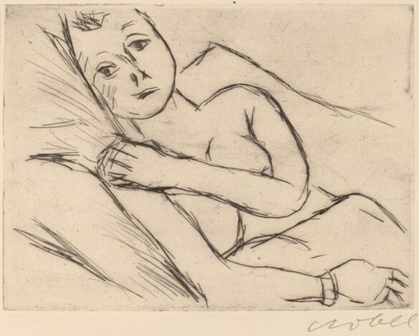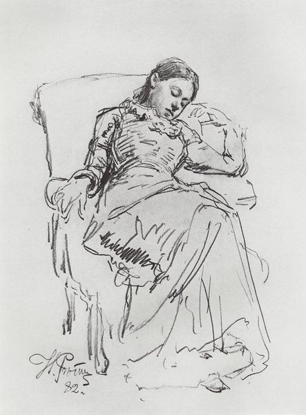 Editor: Here we have "Young Girl Asleep," a pencil drawing created by Balthus in 1994. The figure's languid pose feels very intimate. What can you tell me about this work? Curator: It's interesting to consider the materials themselves, isn’t it? The humble pencil, a tool accessible to many, used here to depict a subject of the leisured class, seemingly unburdened by the toils of production. It poses questions about artistic labor and representation. How does the choice of medium, compared to say, oil paint, affect your interpretation of the work? Editor: It feels immediate and perhaps less formal than if it were painted. A study rather than a finished piece, maybe? Curator: Precisely. It blurs boundaries between the sketch and finished artwork. The economic realities of art making come to mind. Is it a drawing *because* of limited resources? Or does the medium contribute something essential to its message? Furthermore, in the late 20th century, when so much art engaged with mass media and digital reproduction, why the choice of something so analog, so manual? Editor: That's a good question. Maybe it’s a deliberate rejection of that slickness, a focus on the hand and the artist's touch? Curator: Perhaps, a reclaiming of craft. The social context is important here. Balthus worked within a system where his labor, his skill with a pencil, translates into capital, into a commodity. Consider the chair itself, likely mass-produced, a common object rendered significant by its inclusion in a high art drawing. It makes me wonder about the relationship between the artwork and the material culture that surrounds it. Editor: It's making me rethink how I see not just the drawing but also what constitutes ‘art’ and labor in general. I originally saw intimacy, but now I see it framed within questions about production, class, and value. Curator: Exactly! It shows how material choices always carry ideological weight, subtly influencing how we perceive the work and its place within society.