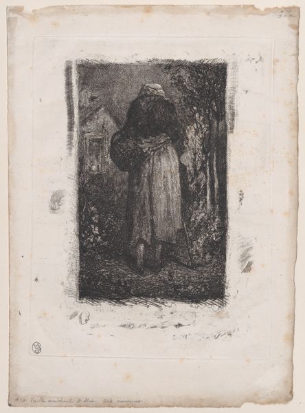 Curator: This is Jean-Louis Boussingault's ink drawing, "La Gare," created sometime between 1893 and 1943. What strikes you first about this piece? Editor: The energy! The scene feels incredibly dynamic, despite being a still image rendered in a muted palette. There's a sense of bustling movement, almost chaotic, yet strangely contained. Curator: Absolutely. Boussingault captures the dynamism of a train station—or 'gare'—as a focal point of urban life. It is rendered in a style reminiscent of Impressionism. Consider how train stations themselves, especially in the late 19th and early 20th centuries, became potent symbols of modernity. Editor: Right, hubs of both promise and anxiety, especially within a rapidly changing sociopolitical context. Think about the influx of people, often migrants seeking opportunity, filtered through spaces designed to move them along efficiently. You feel the pulse of labor in those crowds, their dreams and desperation funneled into those dark tracks. Curator: Yes, the perspective almost funnels the viewer's eye towards the distant opening, toward a source of light, but that perspective is also defined by looming architecture. The dark, vertical lines and architectural structures certainly speak to power and industrial progress. The Beaux-Arts architectural details around this train station broadcast national strength. Editor: I see that framing—that inherent tension. Those structures weren’t neutral. Their aesthetic grandeur masked the exploitation that fueled their construction. What strikes me is the shadow it casts, literally and figuratively, on those individuals within the public sphere. What do we really see when we consider “progress” without interrogation? Curator: An excellent point. Boussingault has indeed given us much to consider about progress, its price, and the transient experience of being a body within a system in motion. Editor: Precisely. Boussingault asks us to bear witness to the human story behind what seems like industrial innovation. This perspective is valuable today.