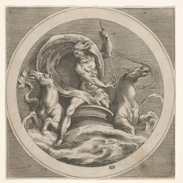 Jacob Matham created this engraving, "Lucht (Aer)," around the turn of the 17th century. The composition is immediately striking, presenting an allegorical figure of air amidst a flurry of avian life, all encased within an ornate, oval frame. The figure reclines on billowing clouds, a symbol of the element itself, with various birds populating the scene. A peacock offered by the figure stands out, its plumage a sign of vanity and pride, attributes often associated with the intangible nature of air. The detailed hatching technique used to create the varying tones and textures gives a tangible form to the unseen. The artwork challenges fixed meanings. The subject’s androgynous features, combined with the symbolic birds, destabilize established categories of gender and nature, engaging with emerging Renaissance ideas about the mutability of the world. The visual elements, from the billowing clouds to the poised birds, work together, inviting continuous re-interpretation.