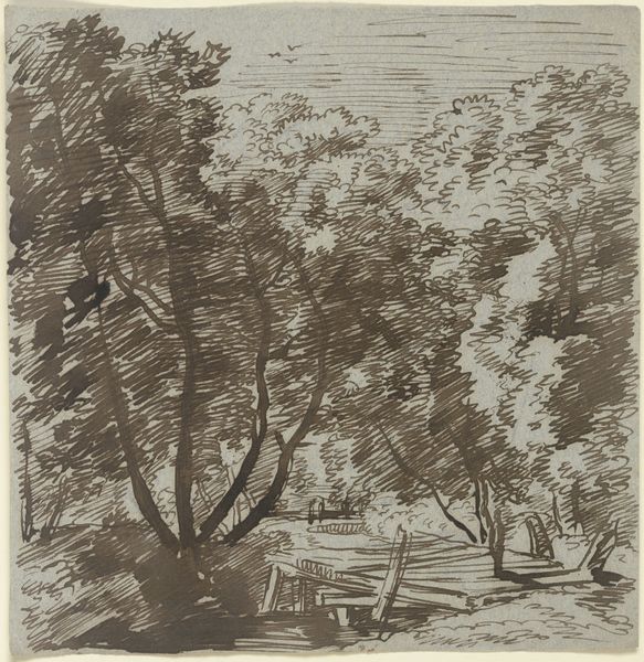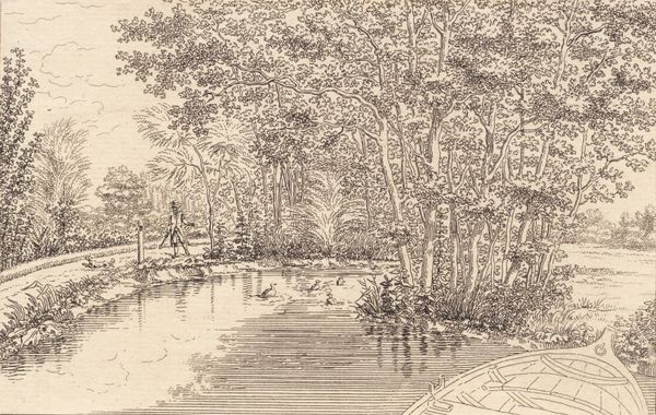 François Louis Thomas Francia created this landscape drawing, now held at the Minneapolis Institute of Art. Born in France during a period of immense social upheaval, Francia navigated the shifting political landscape of post-revolutionary Europe. His work reveals a tension between romantic ideals of nature and the realities of a rapidly industrializing world. Notice how the almost scientific precision of the foliage contrasts with the soft reflections in the water, offering a space for contemplation. Francia spent time in England, where he was influenced by the English landscape tradition, yet he maintained a uniquely French sensibility. This drawing captures a transient moment; it invites us to consider how our relationship with the environment is shaped by our cultural identities and personal experiences. "Wooded Landscape" presents an opportunity to reflect on our place within the natural world.
