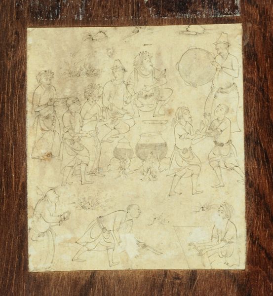 Curator: Oh, my word, this piece radiates energy! It's almost dizzying at first glance—all that motion packed into such a small space. Editor: It's an exquisite page, dating back to around 1585, from a Kulliyyat—that’s a collected works—of the poet Sa'di, created during the Safavid dynasty. The medium combines drawing and painting with watercolours on paper, depicting a polo game. It now resides here at the Art Institute of Chicago. Curator: Polo! That explains the flurry of figures on horseback. It feels almost dreamlike, the way they’re layered against that decorative, almost otherworldly backdrop. And what’s the feel between the movement and the more decorative elements, I wonder? Editor: Consider the horse itself, throughout different periods in history, always a potent symbol of power, status, and nobility—evident even here. Polo was also favored by royalty, wasn't it? Look how that tradition weaves through the composition. Curator: Definitely seeing the connection to power and nobility. There is that incredible balance—it's delicate, but strong. Like looking through a jeweled window into a lively party you know you should never enter. Editor: And consider the book's significance; Sa'di's verses celebrated worldly wisdom. Combining this with an aristocratic game suggests a celebration of cultured life and courtly virtues. Notice how the colour palette accentuates this sense of elevated play and sophistication. Curator: Exactly, like the manuscript as a whole is a carefully crafted little world. What do you reckon the people making this kind of piece thought about as they worked on it, day after day? I imagine it almost becomes another version of your lived reality… Editor: Perhaps they recognized that symbols shift. Images, then and now, speak volumes, often unconsciously. What seems a simple polo game, when captured so meticulously, can become an embodiment of aspiration and cultural memory. Curator: So well said. And somehow the magic of seeing art centuries later, just to feel this quick connection of people making meaning, is deeply powerful, isn't it? Editor: Indeed. A beautiful convergence of poetry, sport, and power—all rendered in delicate brushstrokes. It certainly gives us so much to consider, even today.