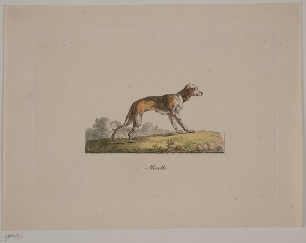 "Minette" is an engraving by Christian David Gebauer. Born in 1777, Gebauer lived during a time of shifting social structures across Europe. At first glance, this seems a simple portrait of a dog. However, it’s worth considering the context of the late 18th and early 19th centuries, when depictions of animals often carried symbolic weight. Dogs, in particular, were frequently used to represent traits like loyalty, fidelity, and status. The breed, a sighthound known for its speed and elegance, suggests an association with aristocracy and the hunt. The level of detail Gebauer employs in rendering Minette is remarkable and invites an emotional connection to the animal, as do the very human qualities of alertness and poise. By individualizing Minette through art, Gebauer elevates the animal, blurring the lines between pet and portraiture, commenting on the emotional bonds between humans and animals.