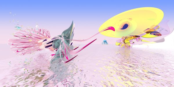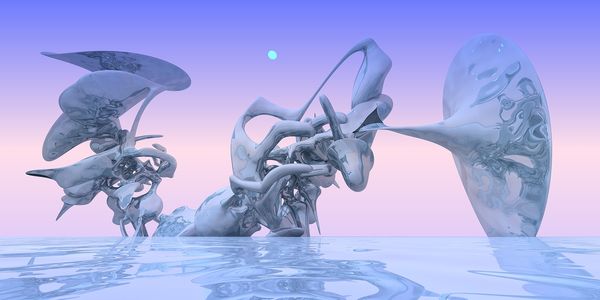 Stepan Ryabchenko made "Hunter" using digital tools, playing with light and form in a way that feels both futuristic and ancient. The texture here is all smooth surfaces and hard edges, which gives the whole scene a kind of hyper-real feel. Look at the way the light bounces off the Hunter's back. Notice how the color shifts from deep violet to a shimmering teal? The creature itself seems to emerge out of pure color. It reminds me of the way that Yves Tanguy's surrealist landscapes create a dreamlike world. Ryabchenko builds this world out of digital code rather than oil paint. Is it a comment on technology, or is it just a new way of exploring the same old questions about what it means to be alive and to see? Maybe it's both.