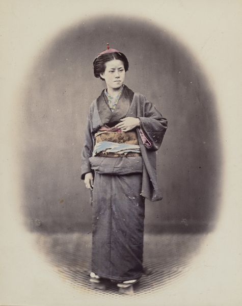 This is Card Number 180, Geraldine Ulmer, from the Actors and Actresses series (N145-1), a promotional cigarette card produced by Duke Sons & Co. The sepia tone gives the card a nostalgic, almost dreamlike quality. Formally, the composition is carefully arranged. The subject, Geraldine Ulmer, is centered, her gaze directed slightly off to the side, creating a sense of depth. The fan in her hand and the folds of her kimono introduce a series of lines and shapes that draw the eye across the image. The sepia tone flattens the image and creates a consistent texture, typical of mass-produced photographs of the time. The text at the top and bottom of the card serve not only as labels but also as graphic elements which frame the central image. The use of Japanese clothing and props in the image engages with broader cultural trends of the late 19th century, particularly the fascination with exoticism. This interest, however, does not represent an actual engagement with Japan but a superficial appropriation for commercial purposes. In this context, the card itself functions as a signifier, encoding layers of cultural meaning related to consumerism, celebrity and representation.