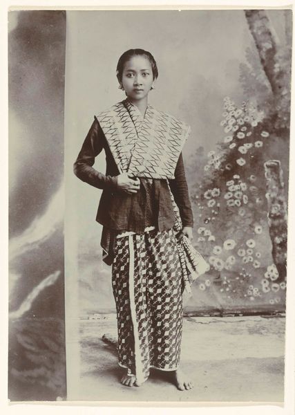 This is Card Number 180, Geraldine Ulmer, from the Actors and Actresses series (N145-1), a promotional cigarette card produced by Duke Sons & Co. The sepia tone gives the card a nostalgic, almost dreamlike quality. Formally, the composition is carefully arranged. The subject, Geraldine Ulmer, is centered, her gaze directed slightly off to the side, creating a sense of depth. The fan in her hand and the folds of her kimono introduce a series of lines and shapes that draw the eye across the image. The sepia tone flattens the image and creates a consistent texture, typical of mass-produced photographs of the time. The text at the top and bottom of the card serve not only as labels but also as graphic elements which frame the central image. The use of Japanese clothing and props in the image engages with broader cultural trends of the late 19th century, particularly the fascination with exoticism. This interest, however, does not represent an actual engagement with Japan but a superficial appropriation for commercial purposes. In this context, the card itself functions as a signifier, encoding layers of cultural meaning related to consumerism, celebrity and representation.