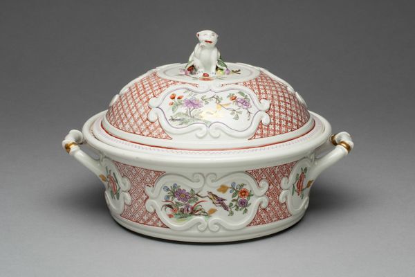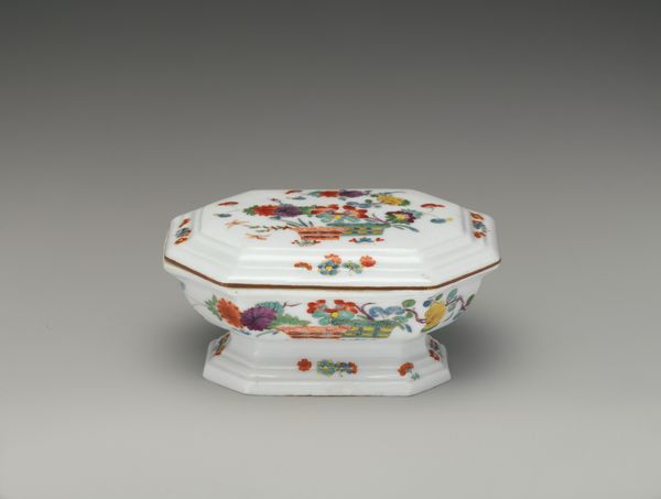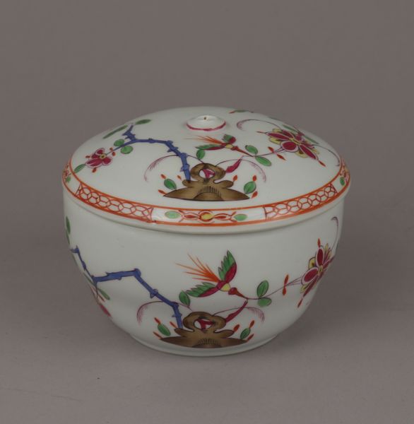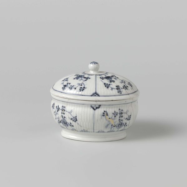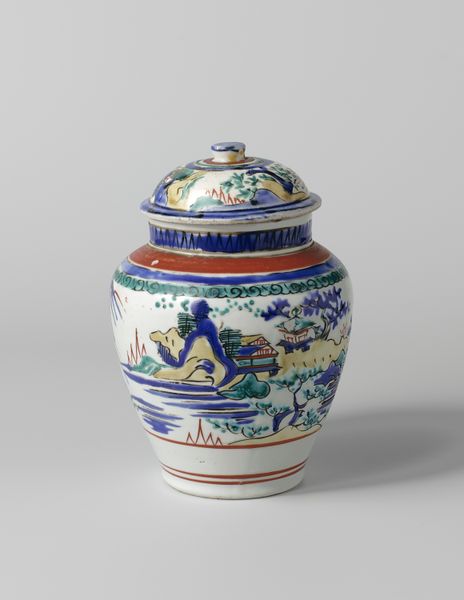 This covered jar was made in Delft with tin-glazed earthenware, though the date and maker are unknown. The jar’s decoration is in the style of Chinese porcelain, featuring blue motifs on a white background. This style was incredibly popular in the Netherlands during the 17th and 18th centuries, when Dutch traders had extensive contact with China, and the Dutch East India Company imported large quantities of porcelain. Dutch potters in Delft then began to imitate Chinese porcelain, leading to the creation of Delftware. The exotic vases depicted on this object also suggest global trade in luxury goods. The jar’s shape, with handles and a lid, is unusual for Chinese porcelain, and may reflect Dutch tastes and preferences. Objects like this point to the role of artistic and economic exchange between Europe and Asia, and demonstrate the commercial and cultural value that Europeans placed on Asian goods. Further research into the archives of the Dutch East India Company and the Delftware factories may provide more insight into its production and use.