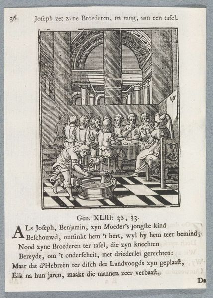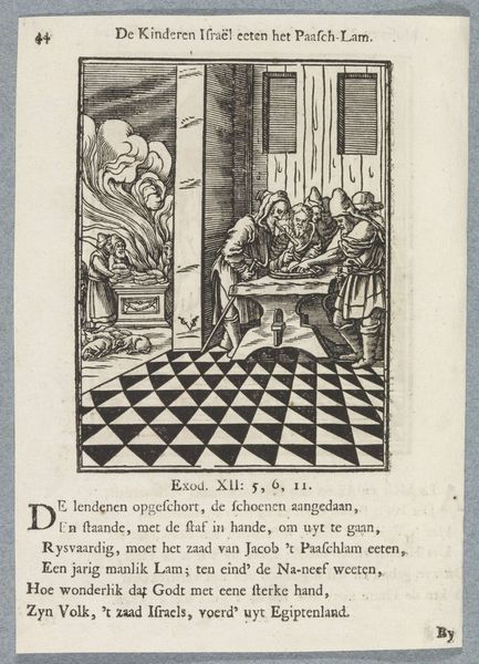 This print, depicting Moses marrying Zipporah, was made by Christoffel van Sichem II in the 17th century. The primary material is wood, worked through the technique of woodcutting. The image’s stark black and white contrast is characteristic of this process. Sichem would have used a sharp knife to carve away the areas of the woodblock that he wanted to appear white in the final print, leaving the raised areas to receive the ink. This labour-intensive method allowed for the creation of multiple reproductions, making the story accessible to a wider audience. The texture and grain of the wood itself contributes to the print's aesthetic, giving it a tactile quality that contrasts with the smooth, uniform surface of a modern print. The level of detail achieved speaks to Sichem's skill as a craftsman, as does the distribution of the image across the plate, demonstrating his careful management of labor, materials, and image. This print reminds us that even seemingly simple images are the result of complex material processes and cultural contexts.