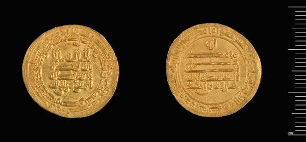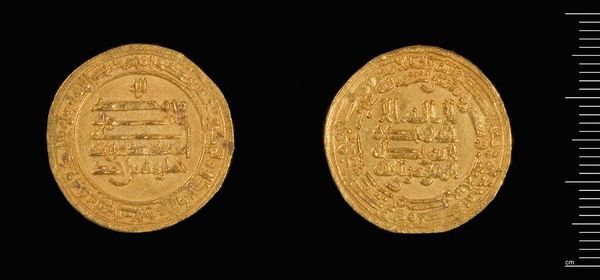 Curator: This is a gold dinar, likely struck during the reign of Harun al-Rashid in Misr, or Egypt, weighing just under 4 grams. Editor: It's amazing how much weight this tiny object carries. The script and the golden hue evoke power, knowledge, wealth. Curator: Indeed. The inscriptions would have served as powerful propaganda, establishing Harun's legitimacy and authority. Editor: And it's all embedded in the circular form—a symbol of completeness, eternity. It’s captivating how potent such a small object can be. Curator: I agree. It is a reminder of the complex interplay of power, religion, and trade in the early Islamic world. Editor: Exactly. It is more than currency, it is concentrated meaning, a piece of history you can hold.
