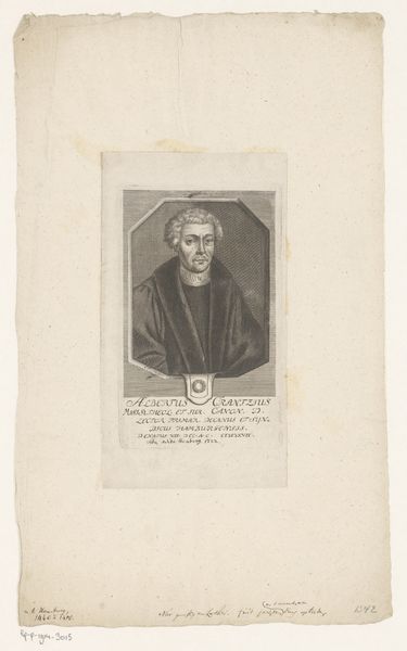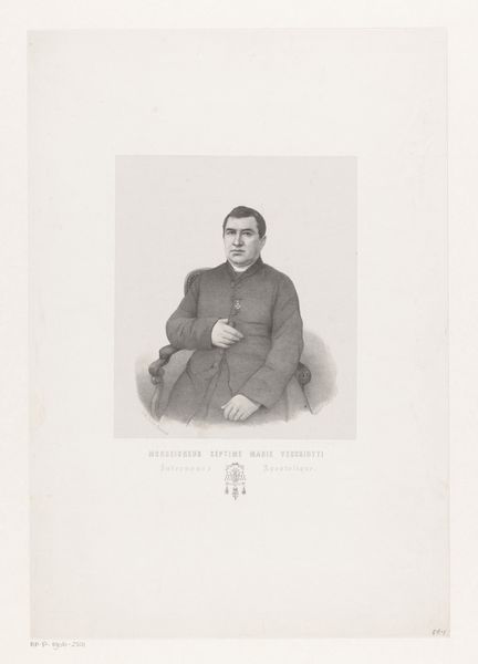 Curator: Here we have an engraving entitled "Portret van Johannes Zwijsen," dating roughly between 1830 and 1906, created by Edouard Vermorcken. Editor: My immediate reaction is drawn to the somber tone. The stark contrast between light and shadow seems to carve out a powerful, almost imposing figure. It is also intriguing how the texture in this piece seems so carefully rendered despite being a print. Curator: It’s important to note that Johannes Zwijsen was a significant religious figure, serving as Archbishop of Utrecht during a turbulent period in Dutch religious history, navigating the re-establishment of the Catholic Church in the Netherlands and a difficult political landscape of religious and class discrimination. Editor: The composition guides the viewer’s eye directly to Zwijsen’s face, but it is interesting how his vestments also play such a crucial visual role. The careful arrangement of the sash, robe, and cross emphasizes order and formality, which speak to structure within institutions. Curator: Indeed. These vestments indicate his high office, while the artist attempts to render visible Zwijsen’s authority, not only as a religious leader, but also as an important negotiator between the Vatican and the Dutch government. It can also be seen, particularly from a queer perspective, as a highly codified, visible performance of authority, identity, and even, in its way, beauty. Editor: Looking at the medium itself – the fine lines of the engraving – do you think there might be a statement here about accessibility or about making this leader and his position more available to the masses? Curator: It's an interesting point to consider. The print medium democratizes the image. It allows for wider dissemination compared to, say, a unique painted portrait reserved for an elite audience. Print in itself can also be seen to offer new opportunities for disseminating progressive thought. Editor: Yes, it makes us reflect on how the artist utilizes contrast and form to evoke particular emotions. But also, context cannot be understated in contributing to one’s understanding and reading of art. Curator: Absolutely, and thinking about Vermorcken as a product of his time also helps reveal how visual arts function within power structures. Editor: On that note, let’s allow our audience the time and space to explore it further and reflect.