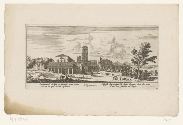 Editor: So this is "View of the Chateau d'Irrois" in Champagne, an etching by Israel Silvestre, made in 1651. The detail is really impressive, but there's also a sense of everyday life with the figures in the foreground. What catches your eye in this piece? Curator: I'm immediately drawn to the etching process itself. Think about the labor involved in creating those fine lines, the acid biting into the metal plate, the physical act of printing. It connects us to a whole workshop environment, not just the solitary "genius" of the artist. Editor: That’s a side I hadn’t considered! The figures suddenly seem more important, not just decorative. Curator: Exactly! Consider who these figures were, their relationship to the Chateau as a structure and a social institution, how the artist might be positioned relative to this society, how prints circulate and how people use them as a form of understanding social hierarchies. The print isn't just about the Chateau; it's a commodity that participates in a broader network of exchange and meaning-making. Who has access to it? Editor: That makes me think about how this image, multiplied through printmaking, makes this private property of "Monsieur le Marquis" much more widely "available," at least visually. Curator: Precisely! How does that affect the Chateau’s value, the Marquis’ status? The image becomes a tool. A tool for commerce? For propaganda? The material conditions of its making and distribution have concrete effects on society. It really makes you wonder, doesn’t it? Editor: I agree. Considering the materials and their implications, I'm viewing the etching with completely new eyes now! Thanks for this materialist lens. Curator: My pleasure! The art is never separate from the socio-economic forces that shape its production and consumption. It really deepens our understanding of the period.