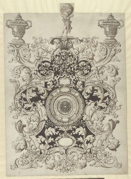 Editor: Here we have Jost Amman’s "Titelpagina met cartouche Hemel," created in 1568. It's an engraving, and what immediately strikes me is the overwhelming symbolism—globes, suns, stars, and chubby cherubs! It all feels very... celestial and orderly, but also a little bit overwhelming. What do you see in this piece? Curator: You’re right, it’s incredibly dense. For me, the overwhelming nature of the symbolism points to the sociopolitical function of knowledge in the Renaissance. Consider the era – European exploration was exploding, purportedly opening up new frontiers, yet tightly controlled and visually disseminated through these kinds of allegorical prints. Editor: So, you're saying it’s not just a celebration of knowledge, but also a carefully curated display of power? Curator: Exactly. Notice how the cherubs, often symbols of innocence and divine love, are actively engaged in mapping and controlling these globes. Doesn’t that speak to the way nascent scientific advancement was often intertwined with colonial ambition, masking extraction under a veneer of enlightenment? What about the sun? What's its prominence saying? Editor: Hmm, perhaps positioning Europe as the center of enlightenment? Or at least, as the source of illuminating knowledge? It’s a much more critical read than I initially considered. I was simply captivated by the craftsmanship! Curator: The craftsmanship *is* stunning. But remember, the power of art often lies in its ability to simultaneously conceal and reveal. We have to question what is included, but more importantly, what’s *not* included or marginalized within these carefully constructed representations. Editor: That’s fascinating. I never thought about how Renaissance art could be seen through a postcolonial lens like that. Thank you! Curator: Of course. It highlights how vital it is for contemporary theory to examine established art historical canons, even when those canons present seemingly neutral imagery.