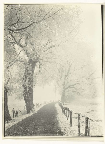 M. Curt Schmidt made this small print, Winterlandschap, using a monochrome palette and a real confidence in the artmaking process. The material aspects of this piece are really something. The texture, oh, the texture! You can almost feel the crunch of the snow under your boots. The artist's focus on the physicality of the medium, that grayscale, gives it a conceptual punch, right? Take a look at the way Schmidt rendered the tire tracks in the snow. There's such a contrast between the soft, untouched snow and the deep ruts left by the tires. It's like the artist is saying, "Here's this pristine landscape, but even nature is subject to change." Schmidt’s piece really speaks to the ongoing conversation in art about how we see and experience the world around us. Like a philosophical debate with a playful wink. It reminds me a little of some of Whistler's nocturnes, but with a bit more bite. It’s not about fixed meanings but embracing the ambiguity of it all.