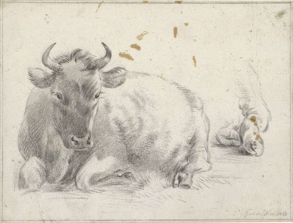Editor: Here we have "Three Buffaloes Lying on the Forum" by Etienne de Lavallée-Poussin, likely created between 1750 and 1793. It's a lovely sketch done with pencil and watercolor, but what strikes me is the peculiar juxtaposition of these beasts within such an iconic setting. How would you approach an analysis of this piece? Curator: It's crucial to consider the materiality of the artwork first. The combination of readily available and relatively inexpensive materials like pencil and watercolor suggests that this was likely a preparatory study. Considering the means of production is also interesting here. Editor: A study? So it wasn't meant as a finished work itself? Curator: Possibly not. These materials allowed for easy transport and quick execution, essential for sketching from life or rapidly recording observations. The “genre painting” aspect reinforces this – depicting everyday scenes. The real question is why these buffalo in the forum? Is it an observation on the use, modification, or consumption of the space by others? Were these working animals? Editor: That's interesting. Perhaps it is not so much about the glory of Rome, but about the more quotidian aspects of daily life imposed on the Forum. Curator: Precisely. Consider also the labor these animals perform or the food they provide. The artist's choice to portray them resting forces us to confront this interplay between classical grandeur and agricultural pragmatism. Do the earthy materials themselves symbolize labor and earthly reality contrasted with the "high art" ideals of Rome? Editor: It certainly gives a different weight to this seemingly simple image. It's much more than a pastoral scene. Thanks for this alternative insight. Curator: Indeed, analyzing the artwork’s materiality unveils the socio-economic context, transforming what appears like a basic sketch into a multi-layered commentary on production, labor, and historical consumption.
