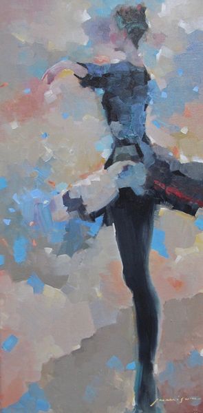 Curator: Jeff Jamison's "Sassy Sally," seemingly rendered in oil paint, strikes me immediately with its rather subdued and thoughtful palette, even amidst what appears to be a bustling city scene. Editor: "Subdued" is one word for it; "brooding" comes to my mind! Look at how the solitary figure, presumably Sally, with that striking red umbrella, is positioned within this almost aggressively modern, urban tableau. She's both central and utterly alone. I wonder what she is up to. Curator: Well, let’s consider the context. Figurative and portrait styles are evident. Cityscapes as themes, intersecting with the contemporary, raise interesting questions about individual identity in a rapidly urbanizing world. Editor: Exactly! There's this palpable tension, isn't there? I mean, I almost feel the rain reflecting light upwards as some sort of inverted spotlight onto her. A "sassy" spotlight perhaps. Curator: Her expression and body language are fascinatingly ambiguous. Is it confidence? Defiance? Maybe something as simple as determination to stay dry. The "sassy" title is doing a lot of work for me in shaping interpretations around power, resistance, perhaps gendered experiences in public spaces. Editor: Right? Is "Sassy Sally" a feminist statement about women taking up space? Or is it playing with those concepts to find somewhere new? Like is this truly her rebellion, or just another way in which urban structures force a performative identity? The artist offers, like, zero easy answers, I am finding! Curator: The "modernism" tag suggests an inquiry into subjectivity, alienation perhaps within modern society, themes that are still painfully resonant. Jamison seems to use that solitary figure to embody, question or perhaps critique our own fractured sense of self within the modern cityscape. Editor: Totally. I’m left not so much admiring the painting, or beauty as conventionally perceived, but more deeply wondering. "Sassy Sally," what is her story? Jeff Jamison what do YOU want to say with her. And with us I guess by proxy? A powerful and thought-provoking work! Curator: Absolutely, and ultimately a mirror reflecting our complex relationships with each other. Thank you for those illuminating insights!