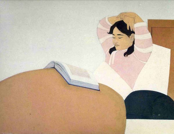 Will Barnet made this painting, Woman Reading, with precise lines, a limited palette, and flat planes, like he's arranging paper cut-outs. What a process! The smoothness of the surface and simple shapes give the painting a cool, serene vibe. The red, white, and blue create a graphic punch, balanced by the gentle peach tones of the woman's face and hands. Her gaze is direct, a little unsettling even, like she's daring you to interrupt her reading. And the cat...it's nestled so perfectly in the crook of her arms, another geometric shape, anchoring the composition. This reminds me of Milton Avery, with a similar quiet intensity and focus on color relationships. But unlike Avery's looser, more expressive brushwork, Barnet's painting has a stillness that borders on the surreal. There's ambiguity, and multiple interpretations are welcome.