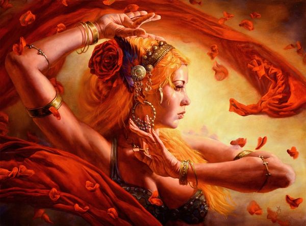 Curator: We’re looking at "Artemis" by Michael C. Hayes. What strikes you first about this image? Editor: The immediate impact is quite arresting. The figure’s intensity, combined with those sweeping wings and poised bow, feels simultaneously powerful and vulnerable. It's like a warrior angel caught in a moment of determined action. Curator: It’s interesting you pick up on that vulnerability, because what draws me in is the construction of this divine figure through readily accessible materials: oil on what appears to be canvas. The artist is grounding this mythic subject in very real, tangible production. How does the application of oil paint, in your opinion, impact the representation? Editor: The romantic style, enhanced by the oil, definitely influences the feeling. We get this idealization of both the female form and the idea of Artemis herself. There's also a tension present; an allegorical figure depicted with modern materials inevitably raises questions about how society interprets mythology. What does that do to our modern understanding, our construction of the divine feminine? Curator: I find the fantasy art aspects really interesting here, because that is something attainable by way of materials; the costuming, the bow—all objects Hayes renders convincingly using modern oil paints and commercial canvas. The idea of accessing these historical and mythological figures becomes tied to production, access, even potentially commodification through artistic labor. Editor: Right, it speaks to how artistic creations contribute to social perception. An allegorical image, when viewed through time and different contexts, shifts in value. It becomes a symbol not just of art or mythology but can comment on beauty ideals, strength, even the role of the muse within institutions that display the work. Curator: Absolutely. Considering the means by which "Artemis" reaches an audience, we really have to reflect on the journey: canvas to painting to exhibition…even this recording shapes how people perceive artistic value. Editor: Looking closer, beyond the surface image and understanding these works' history brings new perspectives, making one question their interpretation.