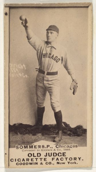 Editor: This is "La Porte, New York, American League," a baseball card made by the American Tobacco Company between 1909 and 1911. It's a small, mass-produced piece of paper, but there’s something striking about the formal portrait. It feels so posed, and yet, somehow very candid. What's your take? Curator: This card is a fantastic lens through which to examine the intersections of early 20th-century commercialism, leisure, and the construction of celebrity. It's more than just a baseball card; it reflects the rise of consumer culture and how it shapes ideas around masculinity and identity. Do you notice how the idealized portrayal contrasts with the gritty reality of working-class athletes? Editor: I hadn’t really thought about that contrast, but now that you mention it, the man’s slightly roughened complexion seems almost at odds with the crispness of the uniform and idealized pose. It's like a tension between reality and representation. Curator: Exactly. These cards helped to craft narratives around athleticism and American ideals. By linking these heroic figures with products like tobacco, there's an implicit endorsement, creating aspiration for the consumer. The companies were really selling not just a product but a lifestyle. Do you think this sort of constructed imagery impacted social perceptions about professional athletes? Editor: It must have. It's a reminder of how images can shape perceptions and how advertising subtly molds cultural values. I had considered it a vintage object, but you’ve really shed light on its complicated cultural work. Curator: And understanding that work is vital if we’re to truly understand our present cultural landscape. Thinking critically about historical intersections illuminates ongoing dialogues. Editor: Thanks, this makes me consider how such everyday items are imbued with so much complex meaning.