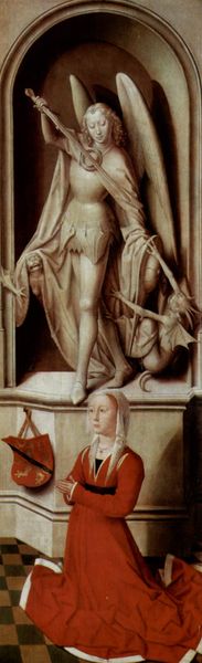 Curator: Welcome, let's consider Andrea Mantegna's "Judith and Holofernes," dating back to around 1500. Editor: Thanks! It's incredibly detailed, especially given it's an engraving. The vertical composition is very striking, but also makes me feel a bit claustrophobic. What stands out to you in this piece? Curator: Indeed, the density contributes to the intensity. Formally, observe the convergence of gazes and the gestural lines. Judith’s downward glance and the servant's averted eyes create a psychological weight. Note also the almost sculptural treatment of drapery – how does that contribute, would you say? Editor: It emphasizes the physicality of the scene and adds a classical feel. And the stark contrast between light and shadow... Is it meant to amplify the drama of the moment? Curator: Precisely! It serves a structural function, guiding the eye through the composition. It's a meticulous play between form and content. The strong horizontal of the bed echoes the cut head in the bag, it’s visually compelling and adds another layer to this violent narrative, don’t you agree? Editor: Definitely. I hadn't thought of it that way before. Focusing on the formal elements really unlocks another level of meaning in the artwork. Thank you! Curator: You're most welcome. By dissecting the structure, we find a deeper appreciation for the artwork. I am glad we agree.