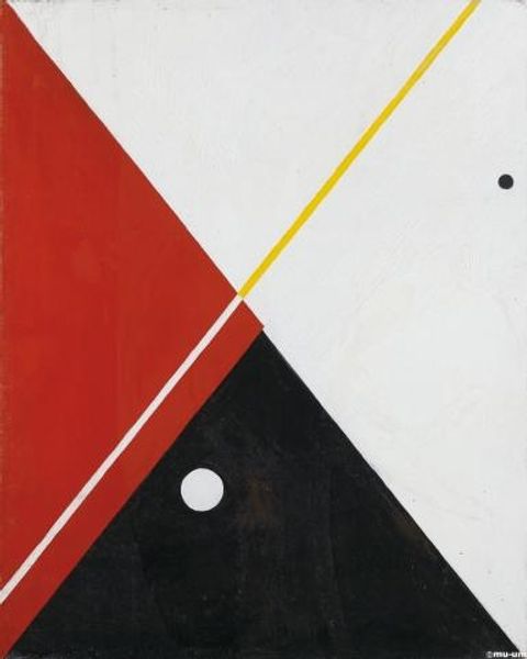 Cesar Domela’s “Composition” presents us with an arrangement of primary colors—red, yellow, and white—constrained by stark black lines. These lines, however, are not merely structural. Consider how often the cross or the intersection has appeared in various forms throughout history. From ancient religious symbols to the grid systems of modern urban planning, these lines evoke a sense of order and division. Here, they suggest a world neatly categorized, yet the asymmetry implies a latent tension. Red, often associated with lifeblood and passion, contrasts with the cool, empty white, sparking an emotional friction. The echoes of Mondrian are undeniable. And like Mondrian, Domela uses the formal language to evoke the universal themes and tap into our collective understanding of order, chaos, and the elemental forces that shape our world. Such visual vocabulary transcends epochs, reappearing in new guises, each time reflecting the cultural anxieties and aspirations of its age.
