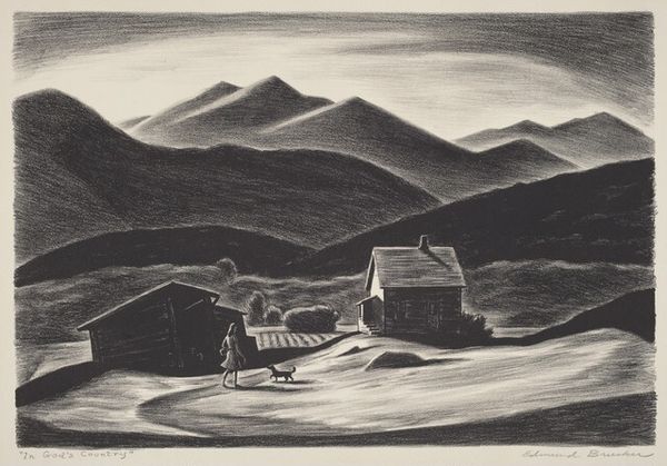 Editor: This is Helen Louise Beccard’s "Ice and Coal Factory," a graphite print from 1937. It depicts an industrial scene with such sharp realism, yet the tone feels bleak to me. What social commentaries do you see in this piece? Curator: This print invites us to consider the complex relationship between industry, environment, and labor during the Depression era. Beccard captures the architecture of the factory, placing it within the landscape. Does the factory dominate, or does the landscape subtly resist? Editor: I hadn’t thought of it that way, but there is a sense of scale there; even with its smokestack, it seems small in comparison to the mountain range. Curator: Exactly. How might that contrast be interpreted? Does the work present an uneasy harmony or an outright challenge? I also ask, how does gender factor into this industrial portrayal, given Beccard's position as a woman artist? Editor: Perhaps she's highlighting the disconnect between the harsh industrial reality and the romanticized ideal of the natural landscape? Was she actively involved in labor rights or environmental movements, or is this piece more observational? Curator: We need to consider how the image participates in larger dialogues about industrialization and its effects on community and environment. Consider also whether the lack of human figures reinforces the idea of a machine-dominated world, echoing debates within feminist critiques of technology at the time. What are your thoughts? Editor: That gives me so much to think about – the environmental concerns, labor, and the female gaze upon these spaces! Thanks for contextualizing all of those layers. Curator: It's precisely these interwoven layers of meaning that make this work so compelling. Thank you for taking this journey with me, through the depths of this image.
