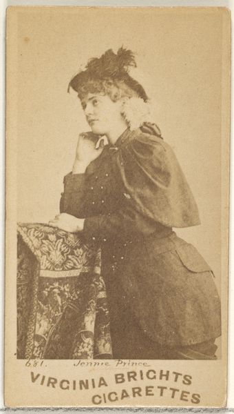 Editor: We're looking at a portrait called "Les étoiles de Joie", taken in the 1860s by Pierre-Louis Pierson, and it's a photograph. There’s something very reserved, almost melancholic about the sitter's expression. What do you see when you look at this work? Curator: Ah, Pierson! I often wonder if he saw himself as a sculptor working with light rather than, say, clay. Consider the soft, almost dreamy quality he achieves. It's as if the woman isn’t standing but emerging, perhaps from memory, perhaps from dream itself! Does that soft focus speak to you? Editor: It does. I’m also wondering about her expression. What was photography like in the 1860s, and what could her expression tell us? Curator: Early photography wasn’t snapshot-quick! Posing for portraits was, quite literally, a stiff undertaking. The lighting must have been tricky! The faintest twitch could turn into a blur, so they're told to be very very still. Perhaps it's the weight of that moment pressing on her that lends that beautiful gravity to her face, eh? Editor: That makes sense. It does make you wonder what was on her mind at that moment. Thanks for sharing that insight. Curator: And thank you for yours! Every gaze upon a work adds another shimmering layer. Never forget that.
